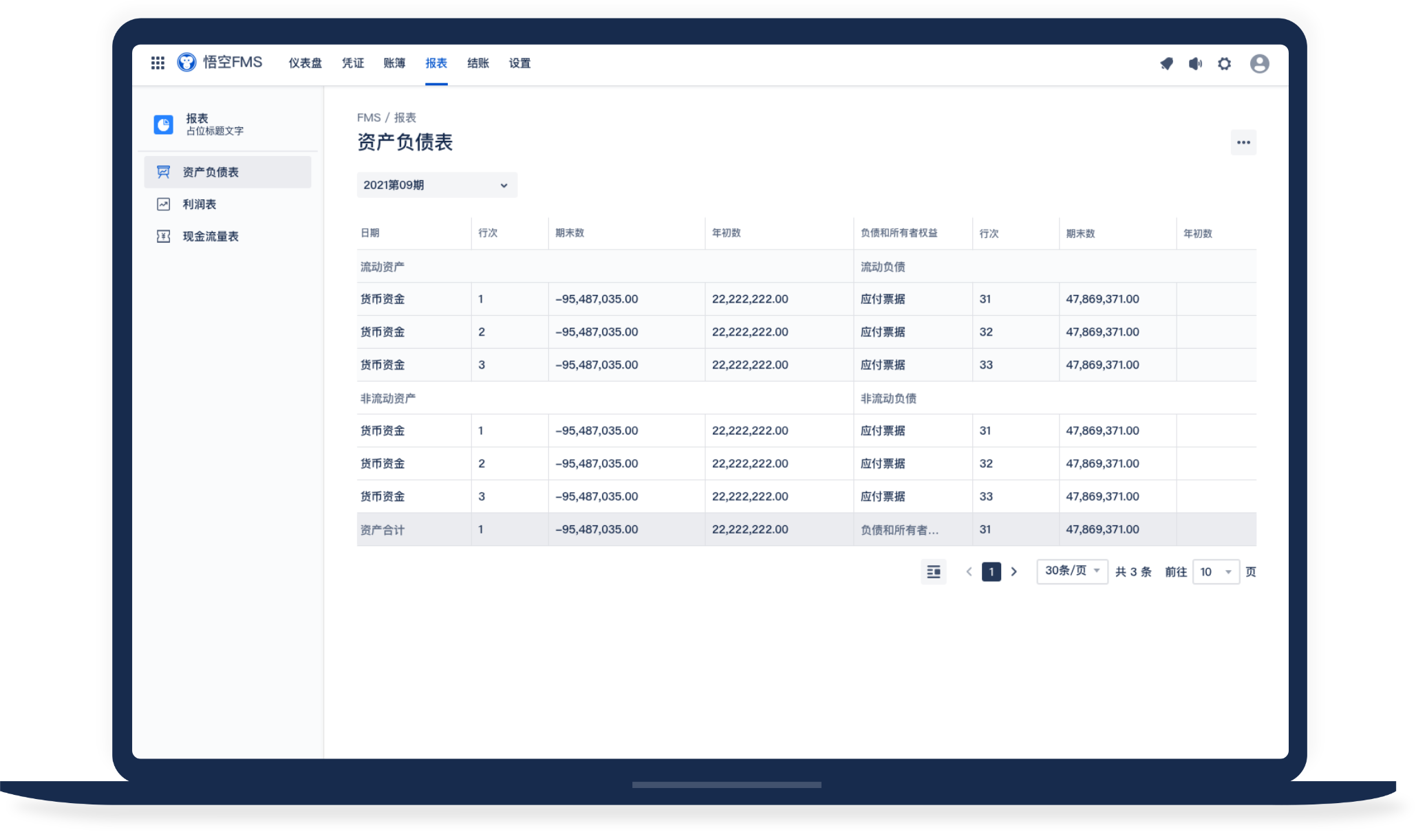 悟空財務(wù)管理系統(tǒng)支持一鍵生成資產(chǎn)負(fù)債表,清晰的查看企業(yè)在一定日期(通常為各會計期末)的財務(wù)狀況(即資產(chǎn)、負(fù)債和所有者權(quán)益的狀況)。